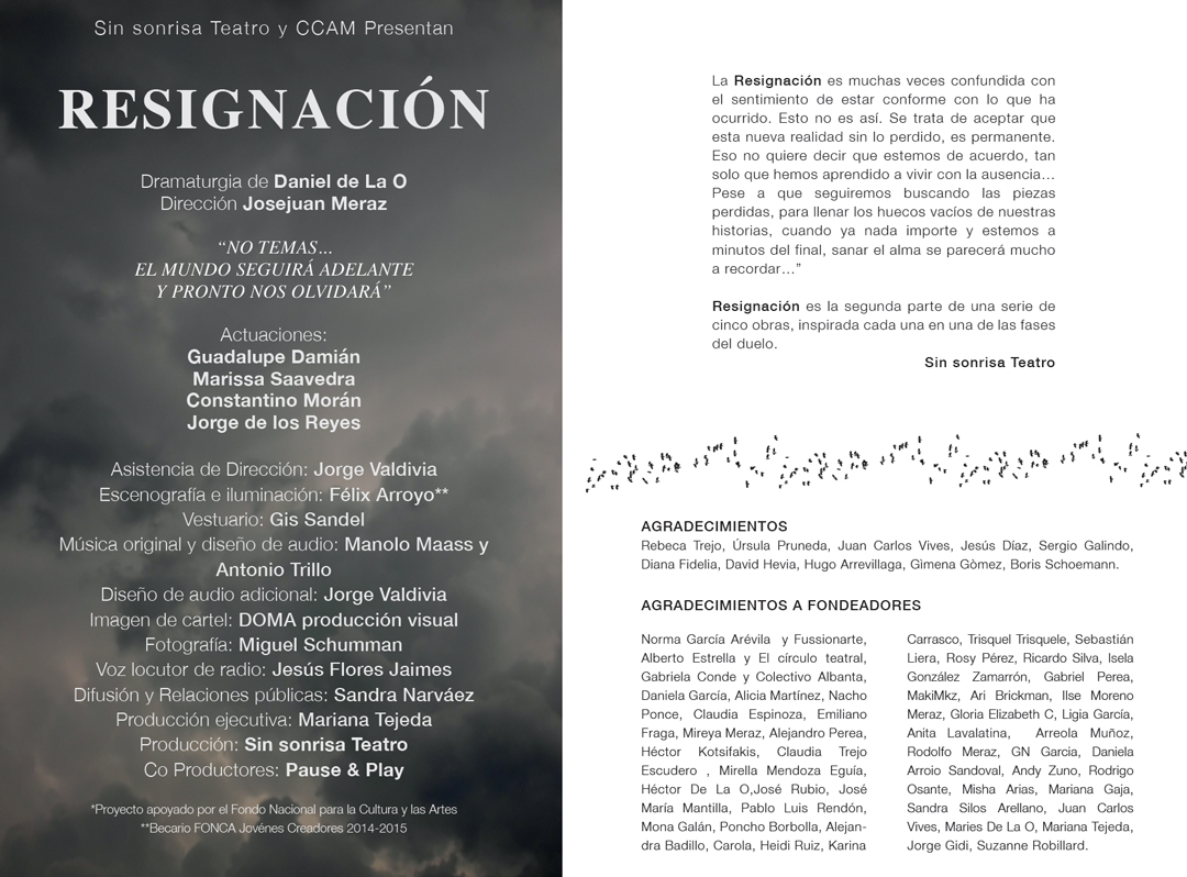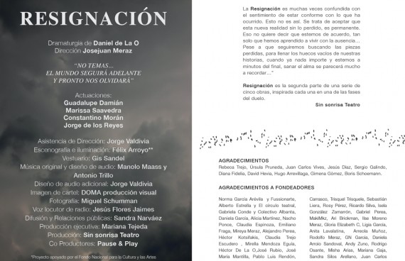 Conjunto de composiciones originales para la puesta en escena ‘Resignación’ de Sin Sonrisa Teatro.